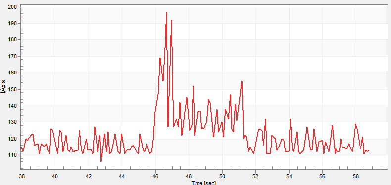 Either through a CAN trace or through FreeMASTER, you should see the battvolt reading the supply voltage (mV), and the cursens reading between 100 and 200, depending on what options your FlexCase is equipped with. The cursens variable reads proportional to the current draw on the DCDC converter. Due to many factors, It has a non-linear relationship to the amperage measured at the external power supply, but can still be used as a heuristic for the power consumption of the FlexCase.